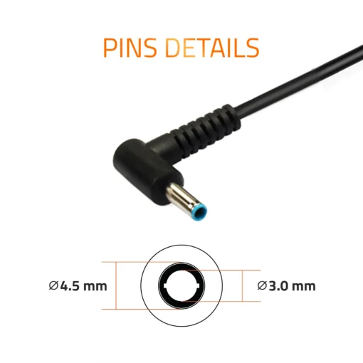 This complete charging solution includes a 1.8-meter heavy-duty power cable with HP’s smart pin connector for perfect compatibility. The compact design features a bright LED power indicator and comes with a detachable AC power cord supporting worldwide voltage (100-240V). Its reinforced strain relief construction and fire-resistant materials ensure durability for both office and travel use while maintaining reliable performance.