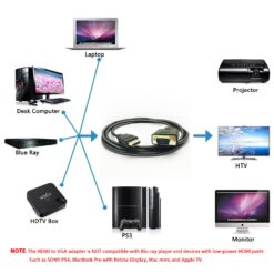 Constructed with gold-plated connectors and oxygen-free copper wiring, this adapter cable ensures maximum signal integrity with minimal interference. Its universal compatibility works with laptops, PCs, DVD players, gaming consoles (HDMI source) to projectors, monitors, and TVs (VGA display). The durable nylon-braided jacket provides superior strain relief and tangle-free operation for daily use in office, classroom, or entertainment setups.
